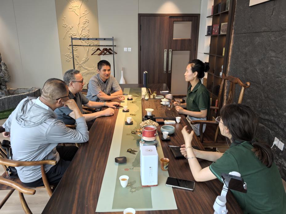 在宁夏正山堂生物科技有限责任公司,针对“如何改进枸杞叶红茶的口感、香气”,刘志彬研究员提出了两点改进方向,一是可以借鉴福建岩茶的制作工艺,通过高温烘焙的温度和烘焙次数调节枸杞叶红茶的滋味口感和内含物质;二是在枸杞叶红茶烘焙时,通过花香熏蒸的方式,调整枸杞叶红茶的风味香气。郑郑永标教授提出,可以通过检测茶汤不同成分含量,来有针对性的调节枸杞叶红茶的口感、香气,同时也希望与企业能够加强沟通联络,将来可以共同申报福建省科技计划对口支援科技合作项目。