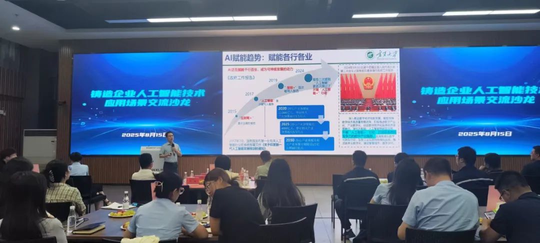 8月15日,在银川市科协的支持指导下,由共享智能铸造产业创新中心有限公司主办的“铸造企业人工智能技术应用场景交流沙龙”在国家智能铸造产业创新中心成功举办。活动汇聚共享集团AI领域骨干及特邀嘉宾约80人,通过“专题分享+场景交流+互动答疑”模式,为铸造企业破解智能化升级难题、探索发展新动能搭建了高效交流平台。