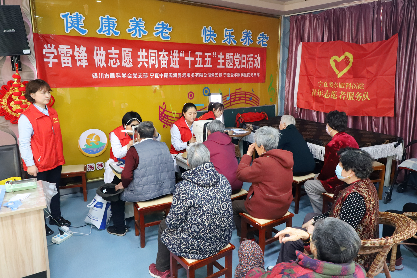 活动期间,各学会响应迅速、亮点纷呈。银川市眼科学会联合宁夏爱尔眼科医院,组建专家志愿服务团队,走进社区、养老院开展眼健康科普与义诊服务,为老年群体、社区居民提供视力筛查、眼病咨询、用眼指导等便民服务,把专业眼科医疗服务送到群众家门口。银川市中医药学会组织中医专家志愿服务队深入基层,开展中医义诊、健康咨询、养生指导和中医药文化宣传,把中医药健康服务送到群众身边。银川市心理卫生协会组织心理咨询师团队走进社区,围绕亲子沟通、家庭关系调适等群众关切问题,开展心理健康公益讲座和心理疏导服务。